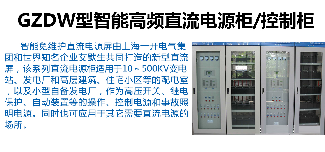 本智能免維護(hù)直流電源屏由上海一開電氣集團(tuán)和世界知名企業(yè)艾默生共同打造的新型直流屏,該系列直流電源柜適用于10~500kV變電站、發(fā)電廠和高層建筑、住宅小區(qū)等的配電室,以及小型自備發(fā)電廠,作為高壓開關(guān)、繼電保護(hù)、自動裝置等的操作、控制電源和事故照明電源。同時也可應(yīng)用于其它需要直流電源的場所。